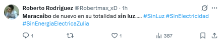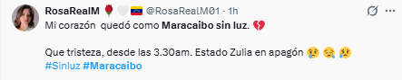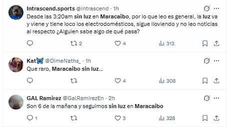 Los reportes indican que amplias zonas de la capital zuliana permanecen sin energía eléctrica incluso hasta pasadas las 7 de la mañana.