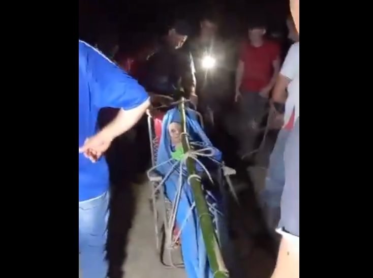 Ante la falta de acceso vehicular, el peligro inminente y la negligencia del chavismo, los vecinos se vieron obligados a trasladarlo a una zona segura usando una hamaca.