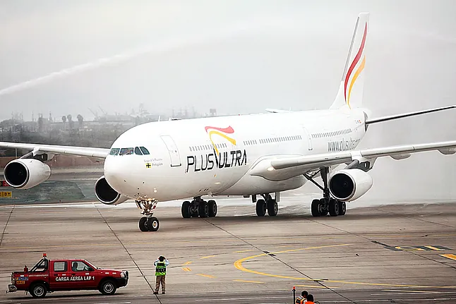 Un avión de la aerolínea Plus Ultra en el aeropuerto de Lima (Perú).EFE