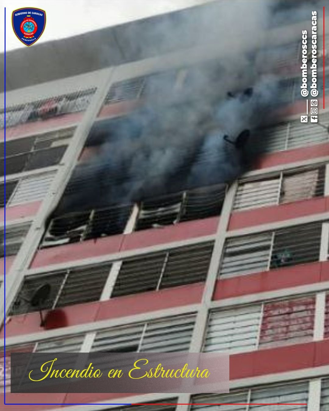 «Un incendio se desarrolló en el municipio Libertador, parroquia San Agustín, avenida Bolívar, edificio de la Gran Misión Vivienda, piso 06, adyacente al Museo de los Niños, en un apartamento de aproximadamente 62 metros cuadrados, resultando una persona adulta afectada por la inhalación de gases tóxicos, trasladada en una unidad ambulancia de la Institución al Hospital Dr. José María Vargas», detalló una publicación en redes sociales.