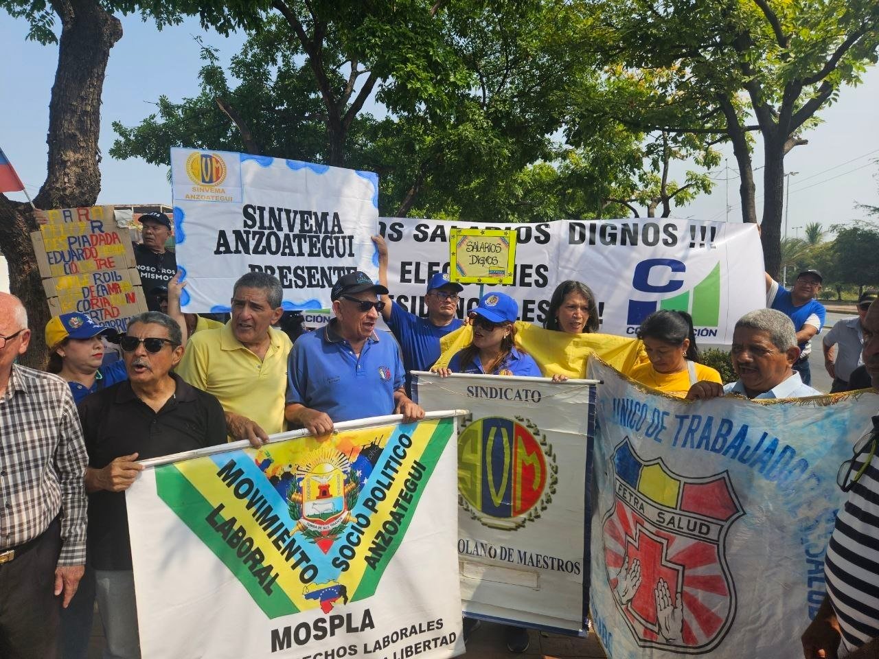 Antes de la caminata, un grupo de manifestantes se concentró en la Plaza Bombón de la capital anzoatiguense, donde se encontraron con otros compañeros que salieron desde la Casa Sindical.