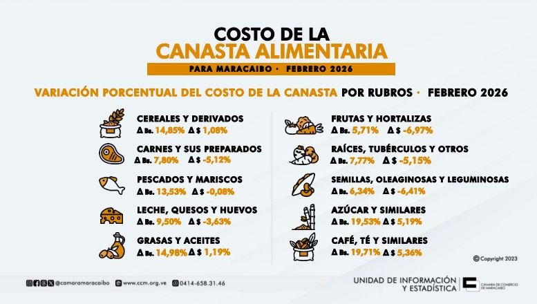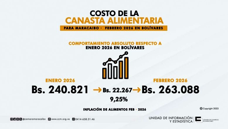 LEE TAMBIÉN: Canasta Alimentaria en Maracaibo aumentó 23,40 % en bolívares durante el transcurso de enero 2026