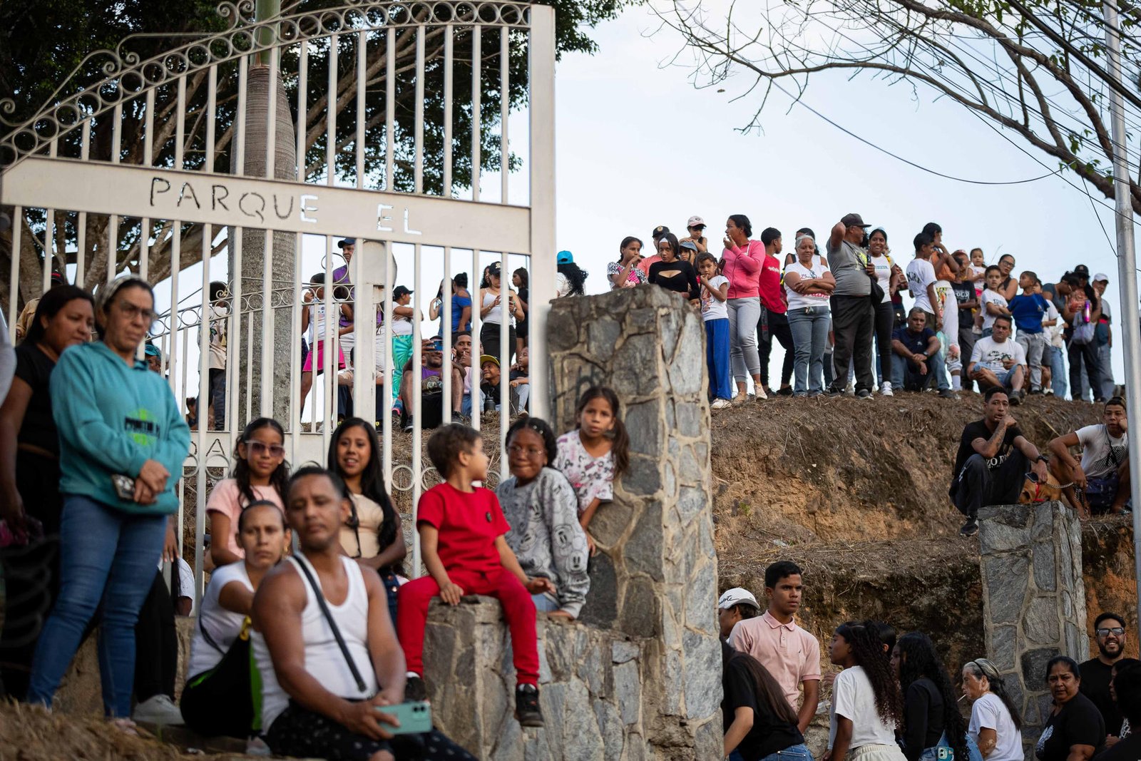 Personas observan la dramatización del viacrusis de Semana Santa este viernes, en Caracas (Venezuela). Miles de personas acompañaron en el barrio caraqueño de Petare, considerado la favela más grande de Venezuela, la tradicional representación del viacrucis que jóvenes y líderes religiosos han organizado durante 40 años. EFE/ Ronald Peña R
