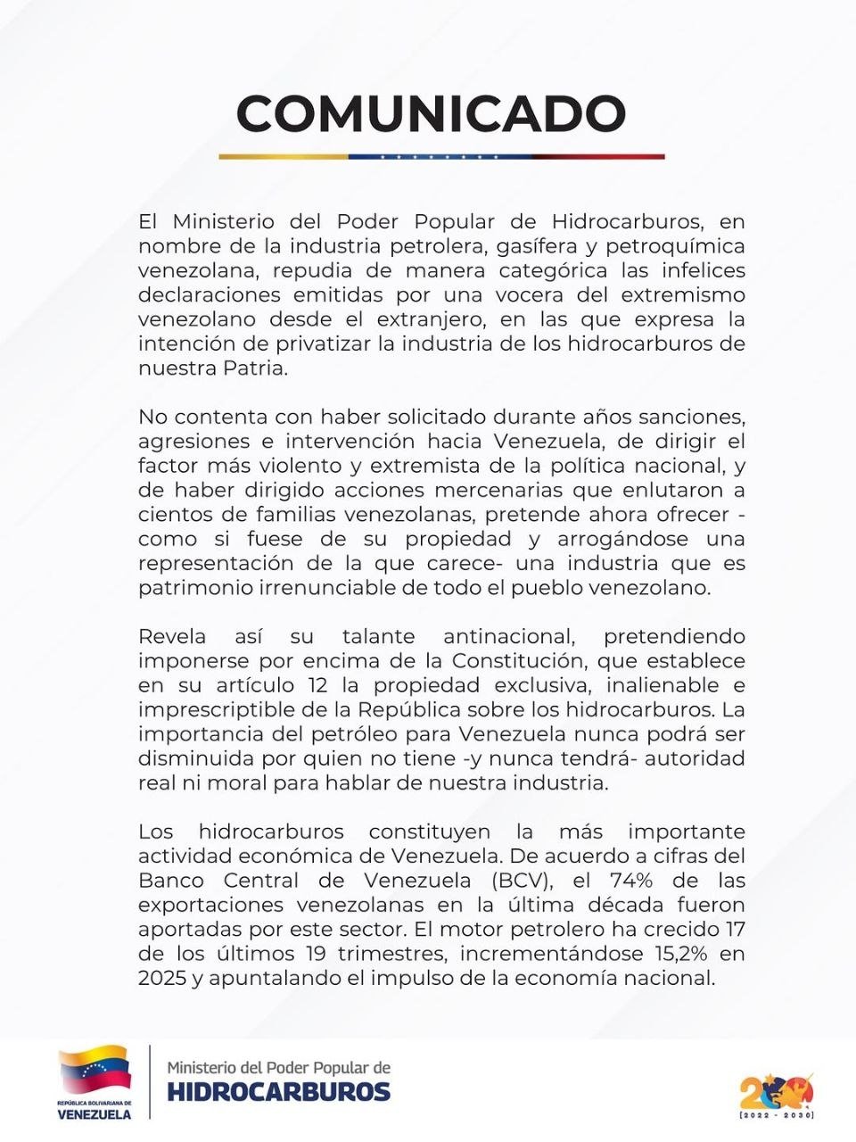 Ante esto, el chavismo evitó responder directamente a los planteamientos técnicos o económicos de la iniciativa. En su lugar, defendió el modelo actual, insistiendo en que los hidrocarburos son un “patrimonio irrenunciable” de Venezuela.