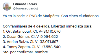 El abogado y activista de derechos humanos, Eduardo Torres, confirmó algunos nombres de los ciudadanos detenidos por manifestar en la protesta que exigía salarios dignos.