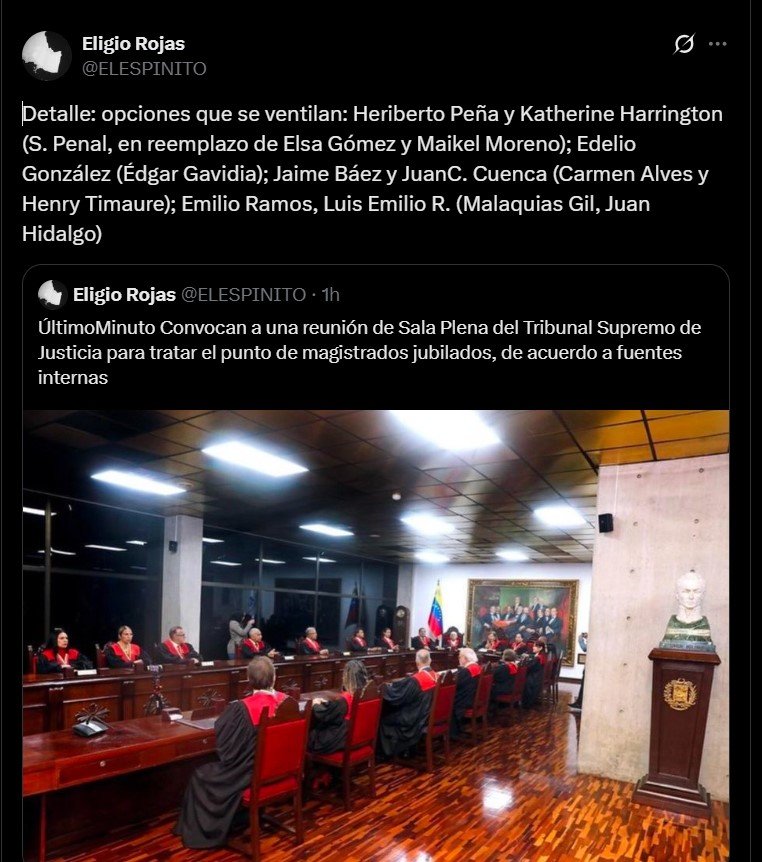 “Convocan a una reunión de Sala Plena del Tribunal Supremo de Justicia para tratar el punto de magistrados jubilados”, indicó.
