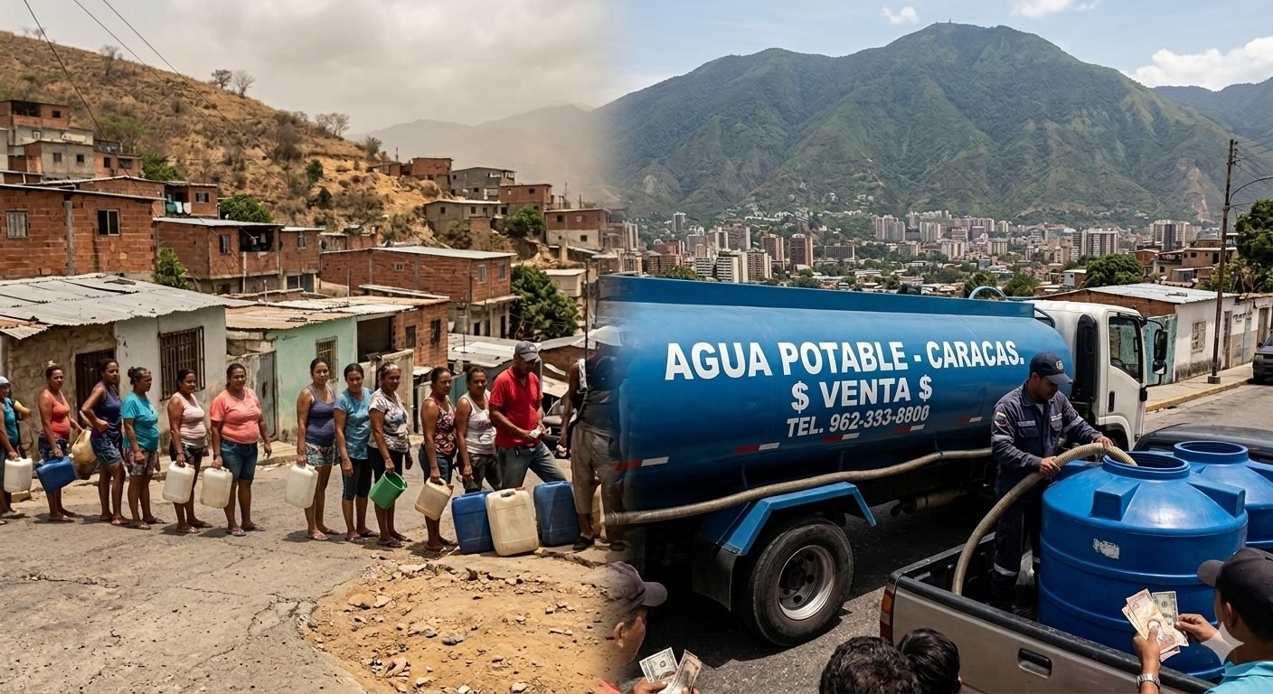 Suministro irregular y de mala calidad: La mayoría de los hogares caraqueños no reciben agua potable de forma constante; el líquido llega por tuberías solo escasos días al año y, con frecuencia, en condiciones que no cumplen con las normas básicas de calidad.