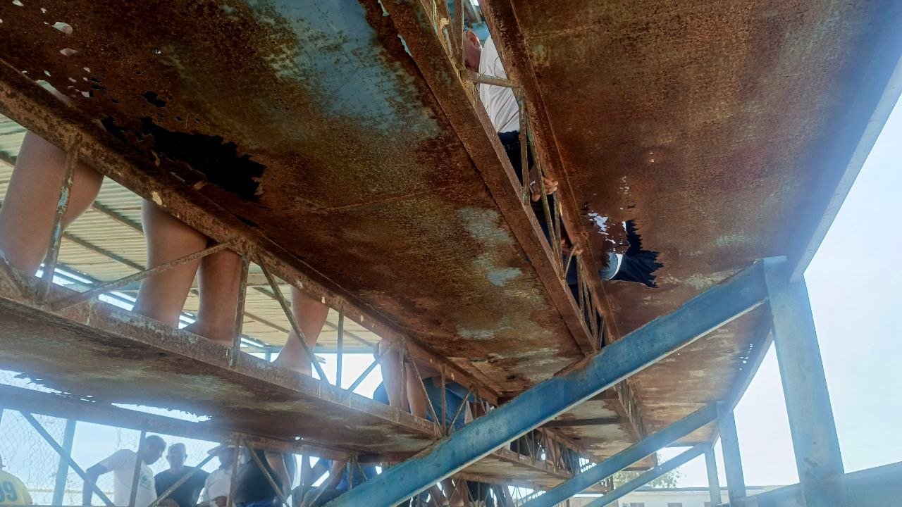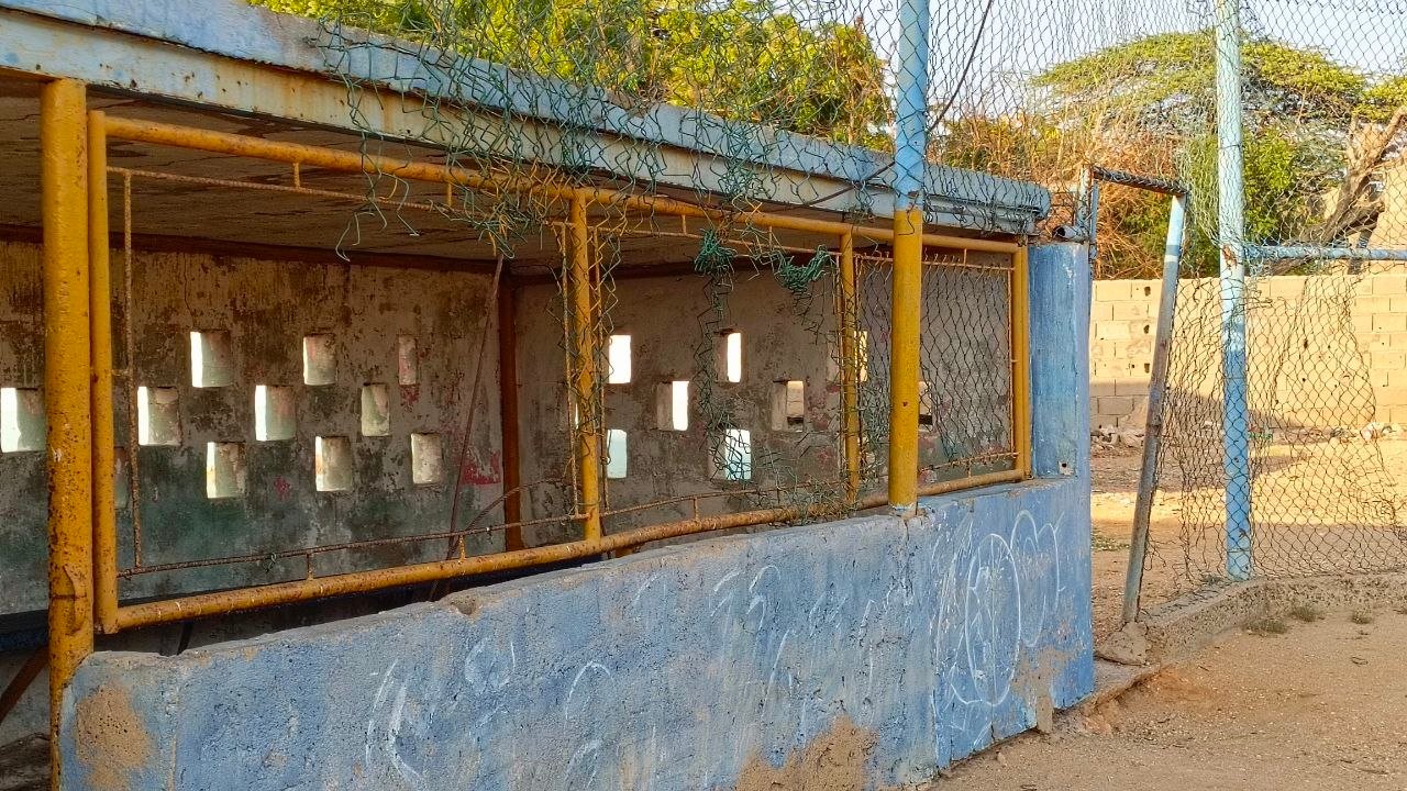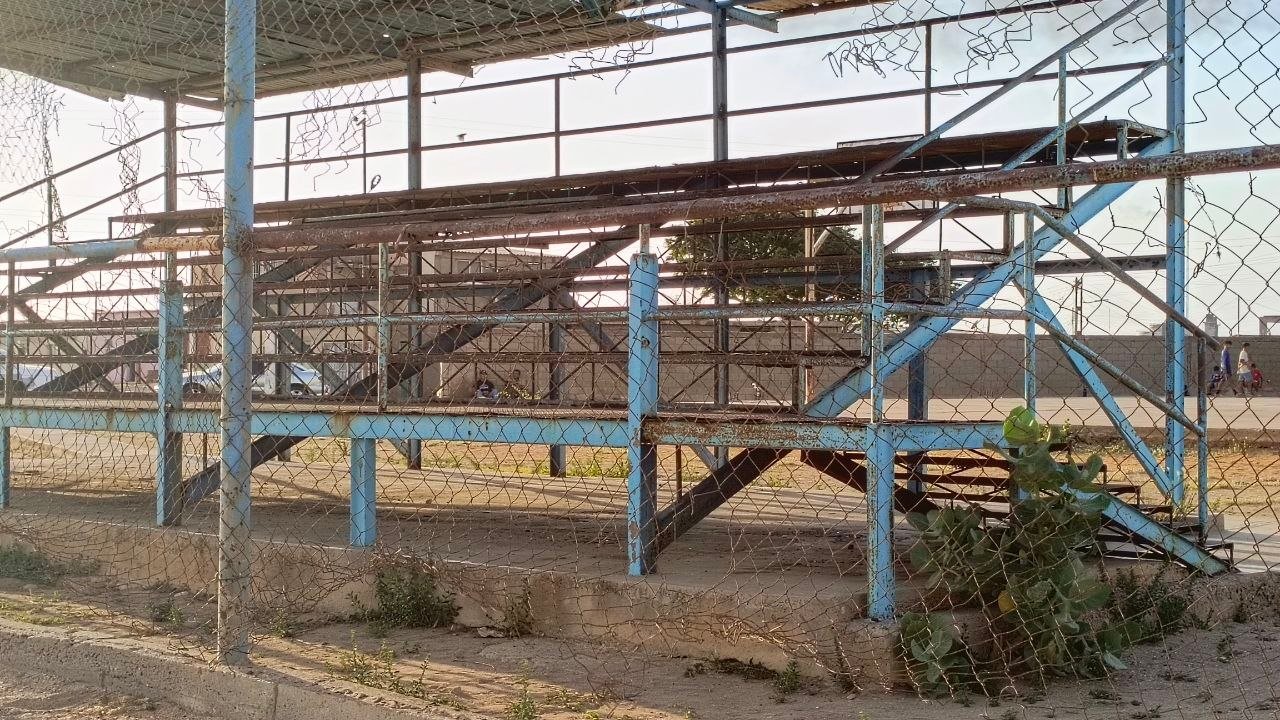 El estadio fie completamente abandonado: la cerca perimetral se cayó; las gradas están muy deterioradas, llenas de huecos; la malla está rota; los baños están destrozados, y ahora es refugio para animales y depósito de basura; los vestidores se caen a pedazos.