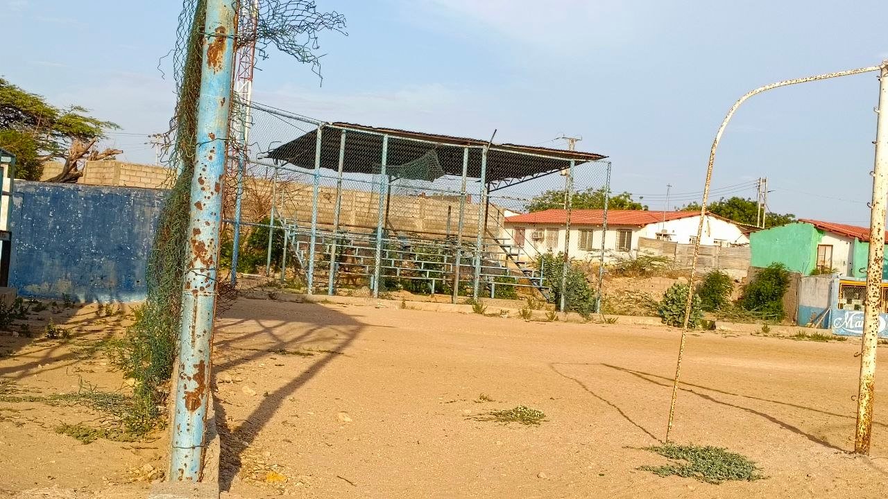 En un terreno con los restos de lo que fue el estadio El Inca en Punta Cardón (municipio Carirubana, Falcón), atletas de todas las edades practican deportes en paupérrimas condiciones.