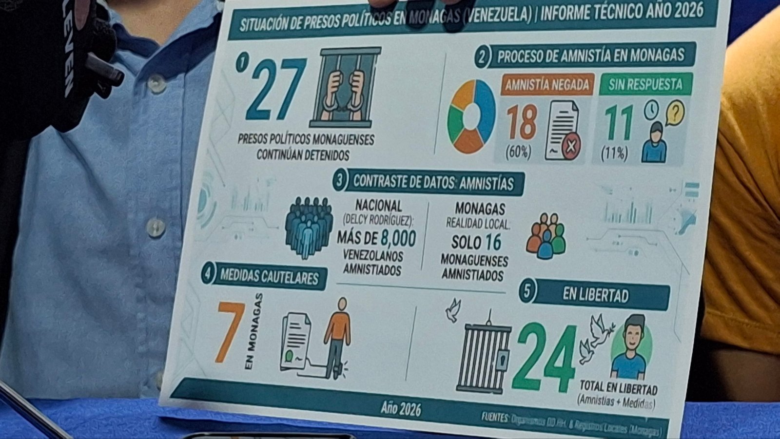 “Nosotros vamos a seguir alzando la voz, con firmeza, con determinación dentro del marco de nuestra Constitución y haciendo un llamado a la reflexión a quienes controlan el poder en el estado y a los miembros de la Comisión de la Ley de Amnistía y a los miembros de la Comisión de Convivencia y Paz de nuestro país, incluso a la presidenta encargada, Delcy Rodríguez, de que esas 8 mil personas no están siendo reflejadas en su totalidad en nuestro estado de Monagas”, expresó Aristimuño.