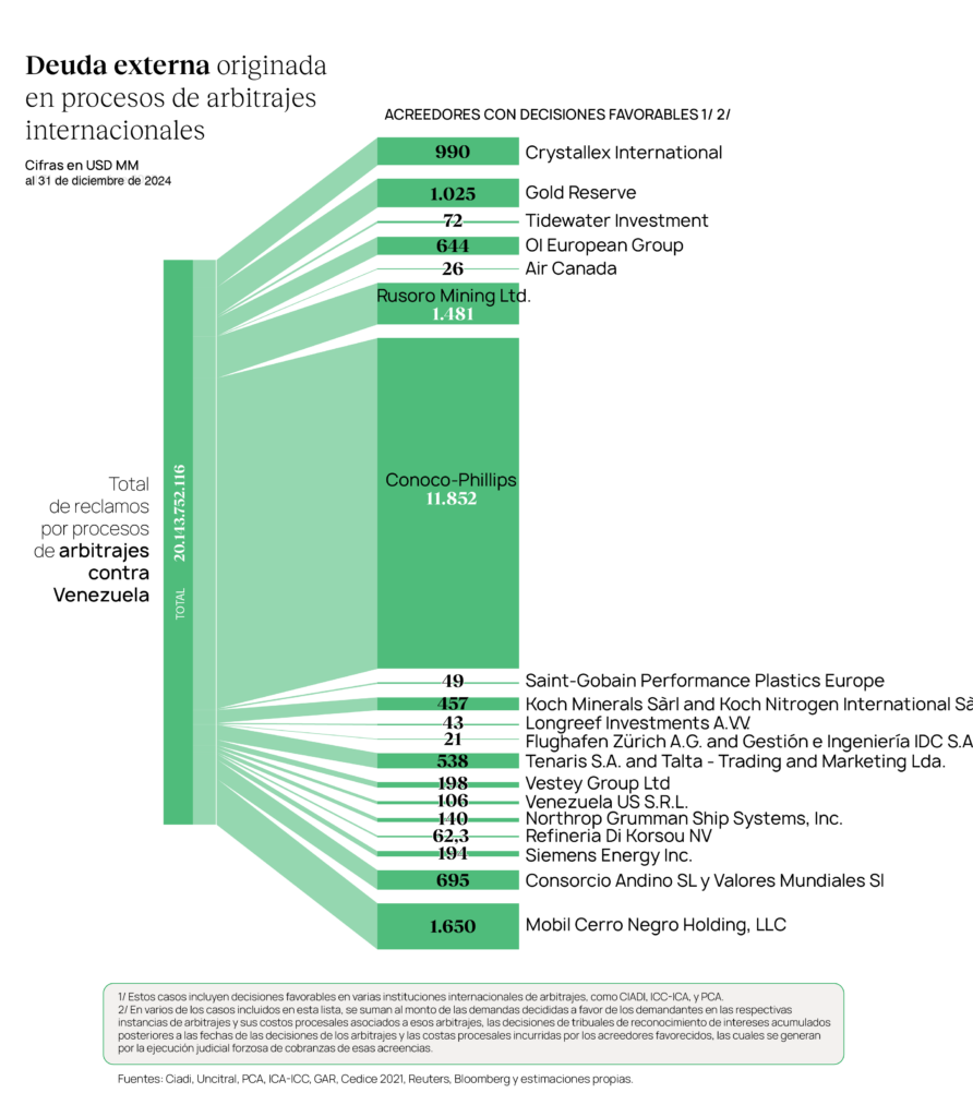 En octubre del 2025 Transparencia Venezuela publicó una estimación de la deuda externa de Venezuela sobre la base de cálculos realizados por expertos que sistematizaron y analizaron información de distintas fuentes. El intento de arrojar luces sobre la falta de información oficial nos dio una cifra mayúscula al cierre de 2024: Venezuela debía 164 mil 432 millones de dólares. Pero ese monto se incrementó a más de 170 mil 360 millones de dólares (170.360.597.976) en lo que va de 2026, si sumamos los nuevos montos reclamados, hasta ahora, solo por dos de las empresas que han sido socias de Pdvsa.
