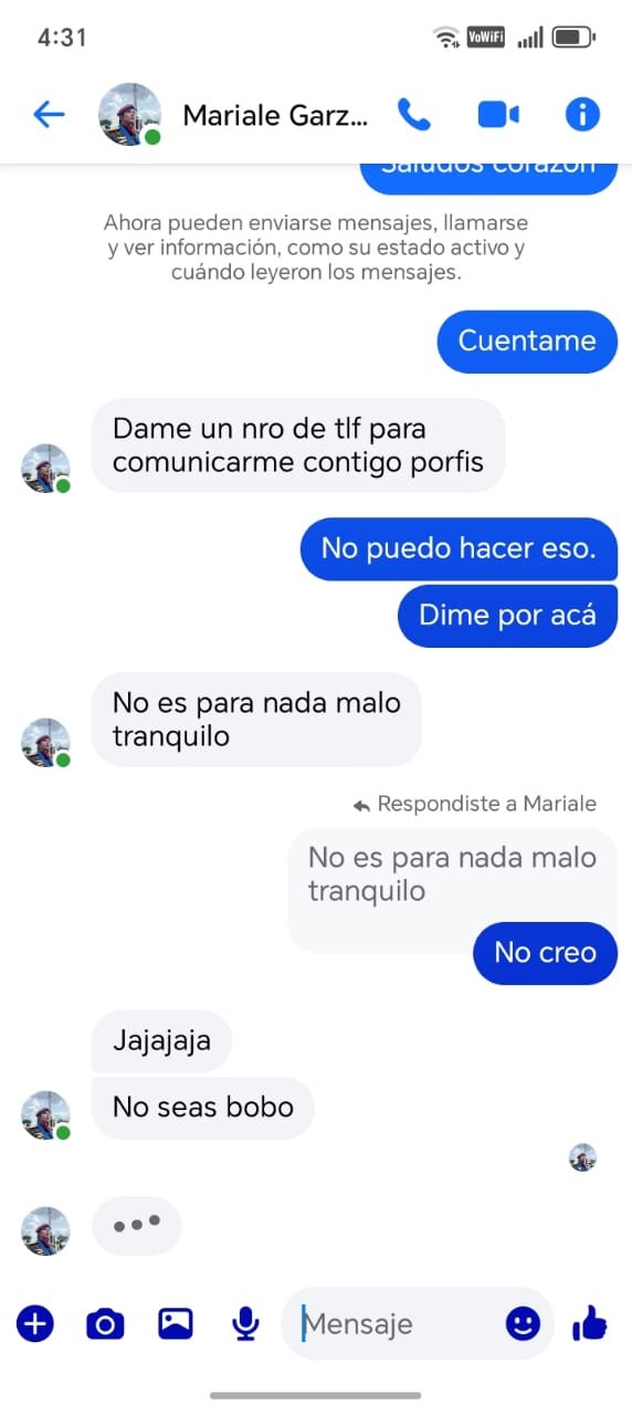En una imagen compartida del chat, se puede leer una conversación donde le solicitan el número de teléfono, pero Henríquez se negó a darlo.
