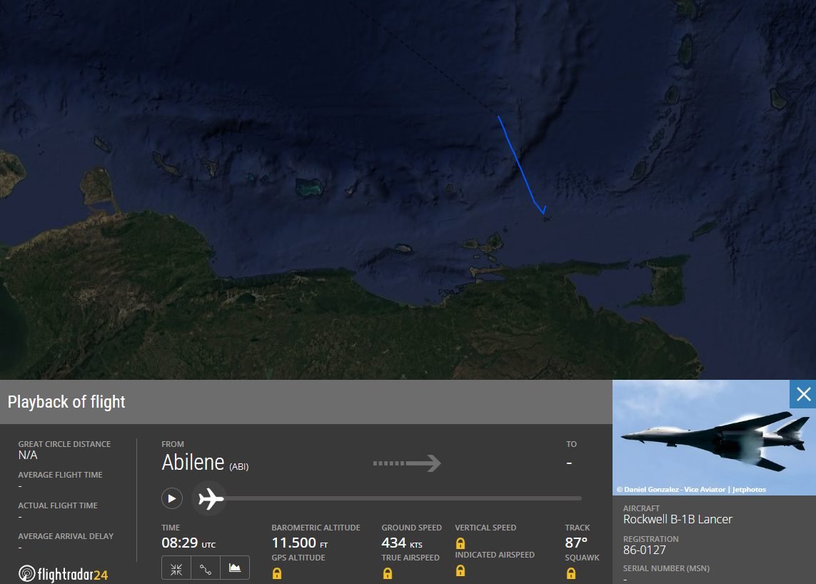 Al menos dos bombarderos supersónicos B-1 «Lancer» se aproximaron a las costas del estado Sucre tras despegar desde el Aeropuerto Regional de Abilene en Texas, Estados Unidos.