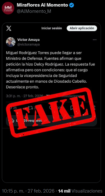 Sin embargo, la cuenta del Palacio de Miraflores en la red social X calificó de «fake» la información para descartarla por completo.