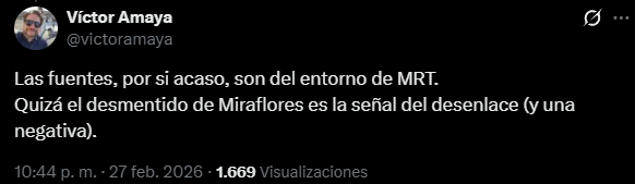 Poco después, el propio Amaya aclaró que «las fuentes, por si acaso, son del entorno de Miguel Rodríguez Torres. Quizá el desmentido de Miraflores es la señal del desenlace (y una negativa)».