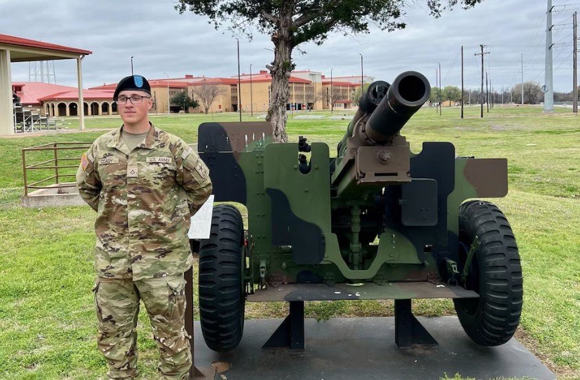 Esta foto, proporcionada por Andrew Coady, muestra a su hijo, Declan Coady, posando para una foto el día de su graduación en el Centro de Entrenamiento del Ejército de EE. UU. en Fort Sill, Oklahoma, el 15 de marzo de 2024 (Andrew Coady via AP)