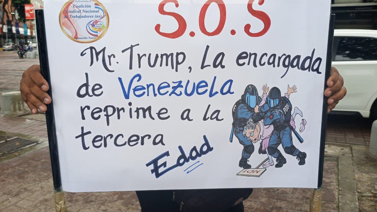 Durante la movilización, los manifestantes llevan petitorios dirigidos al presidente Donald Trump, a la saliente encargada de negocios Laura Dogu y al secretario de Estado Marco Rubio, con el objetivo de denunciar la crisis salarial que golpea a millones de venezolanos y pedir mayor presión internacional para que se produzcan mejoras económicas en el país.