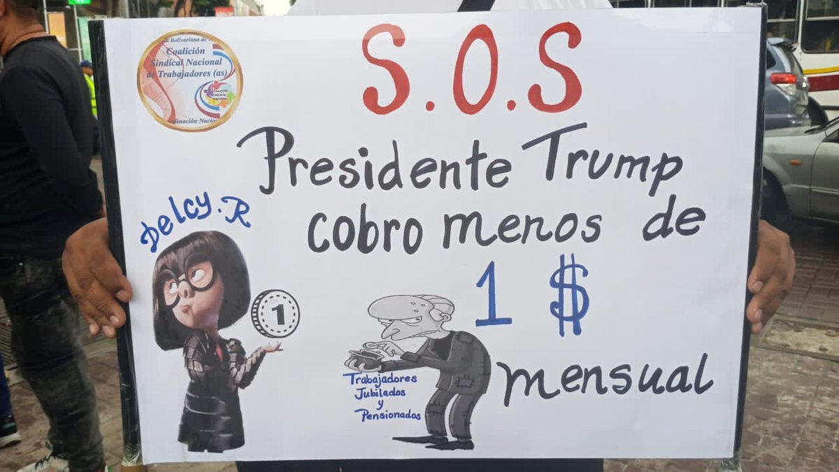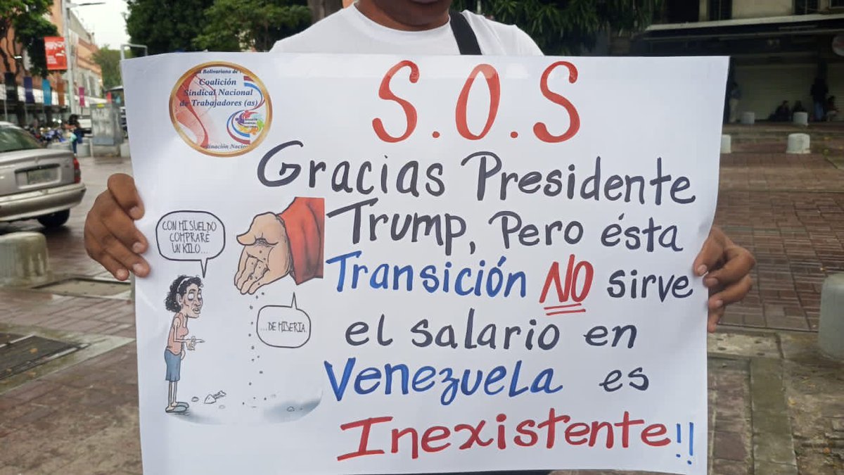 Con pancartas de “S.O.S”, los trabajadores insisten en que la transición política no puede ignorar la dramática realidad de quienes hoy sobreviven con ingresos prácticamente inexistentes. En los carteles destacan mensajes sobre salarios de menos de un dólar, la situación de la tercera edad y la urgencia de un ajuste digno.