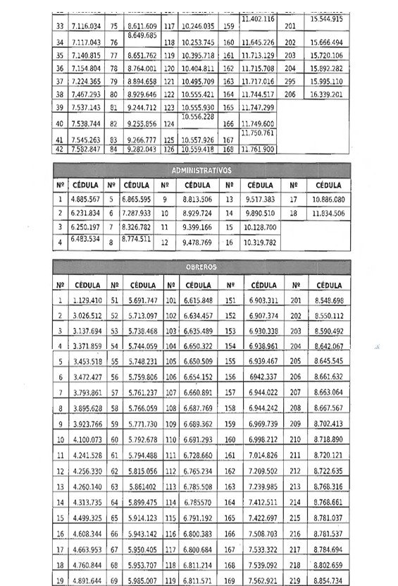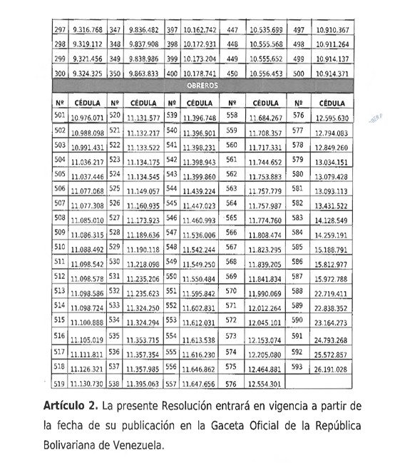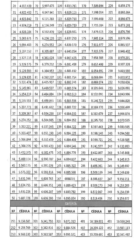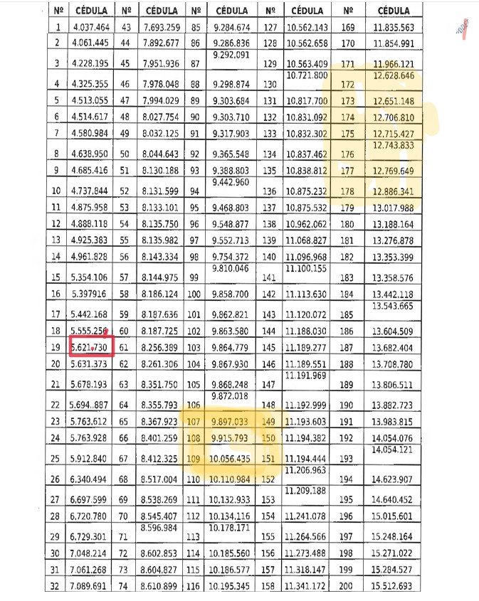 Los nombres y cédulas comienzan a aparecer a partir de la página N° 16 de la Gaceta mencionada.