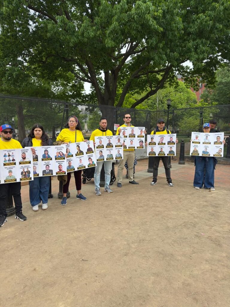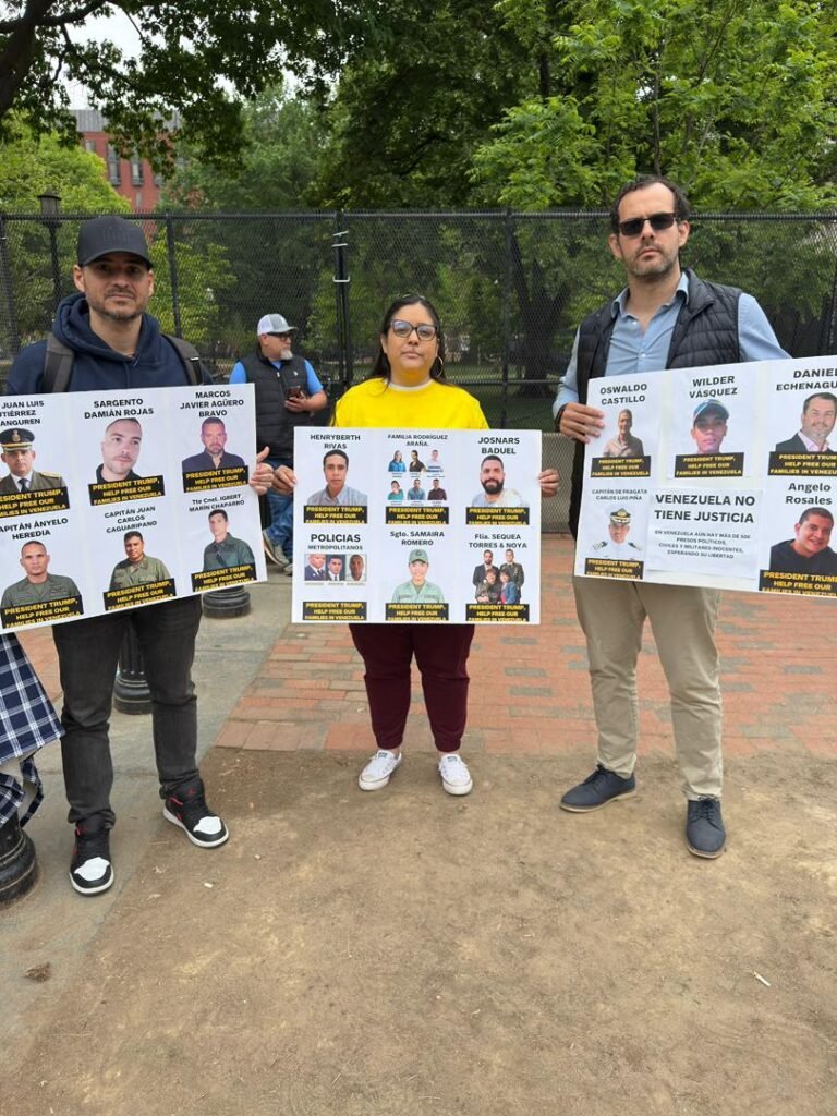 Un grupo de activistas venezolanos se concentró este sábado frente a la Casa Blanca en Washington D.C. para exigir al presidente Donald Trump que presione al régimen de Delcy Rodríguez para que se concrete la liberación de los cientos de presos políticos que permanecen detenidos en Venezuela.
