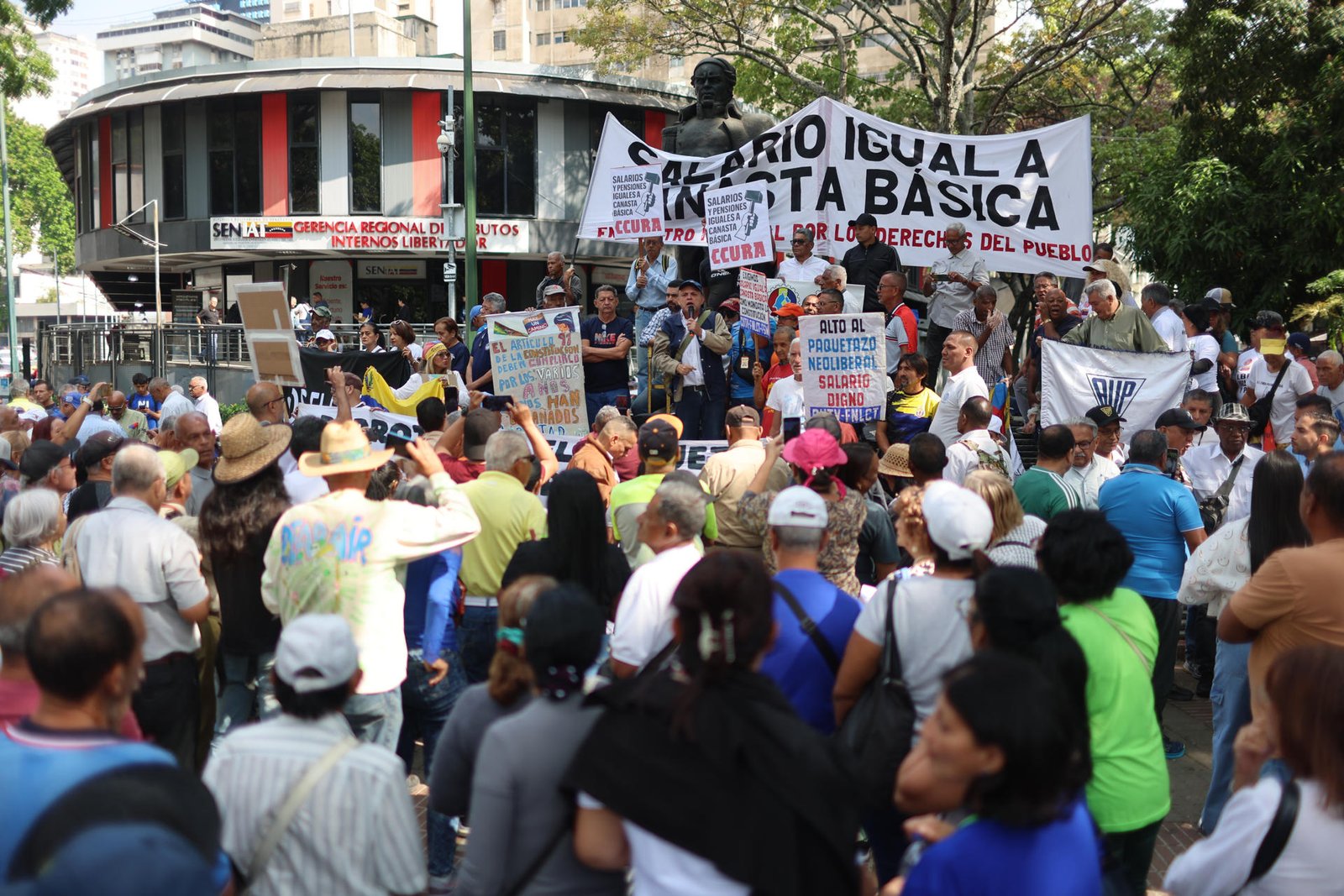 Ciudadanos comenzaron a concentrarse la mañana de este jueves 12 de marzo en la Plaza Morelos, en Caracas, para exigir un aumento de sueldos en el sector público, en el marco de la protesta convocada por estudiantes y trabajadores universitarios contra la “grave crisis salarial”.