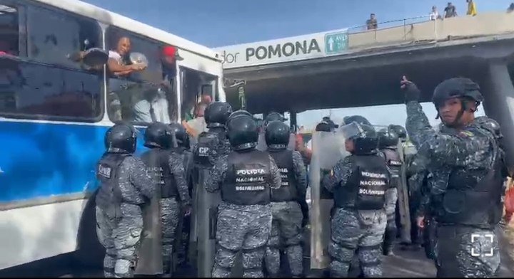 A las inmediaciones de la C-1 a la altura del puente Pomona, un contingente de la Policía Nacional Bolivariana llegó al lugar para pedir a los manifestantes la culminación de la actividad, argumentando que estaban obstruyendo el libre tránsito en una vía principal de la ciudad.