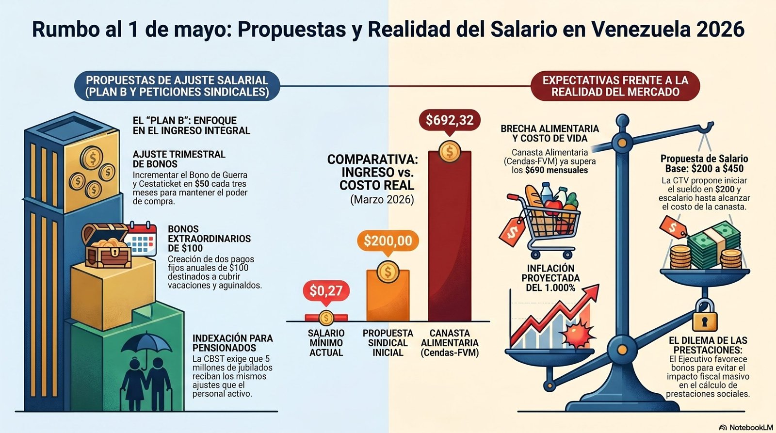Combinación de ingresos: Se espera una mezcla de sueldo mínimo base más bonificaciones (como el «Bono de Guerra Económica» y el Cestaticket) que no tienen incidencia en las prestaciones sociales.