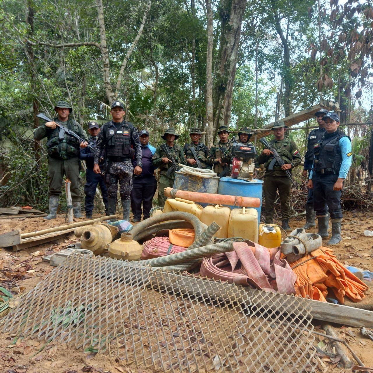 Fanb desmanteló tres campamentos de minería ilegal y detuvo a dos personas en Amazonas (Fotos)