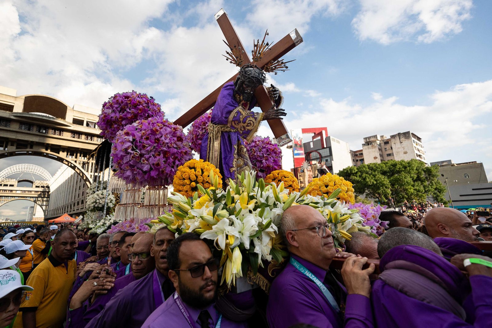 Miles de fieles participaron este miércoles en la tradicional peregrinación del Nazareno de San Pablo, principal advocación de Jesucristo en Venezuela, por varias calles de Caracas.