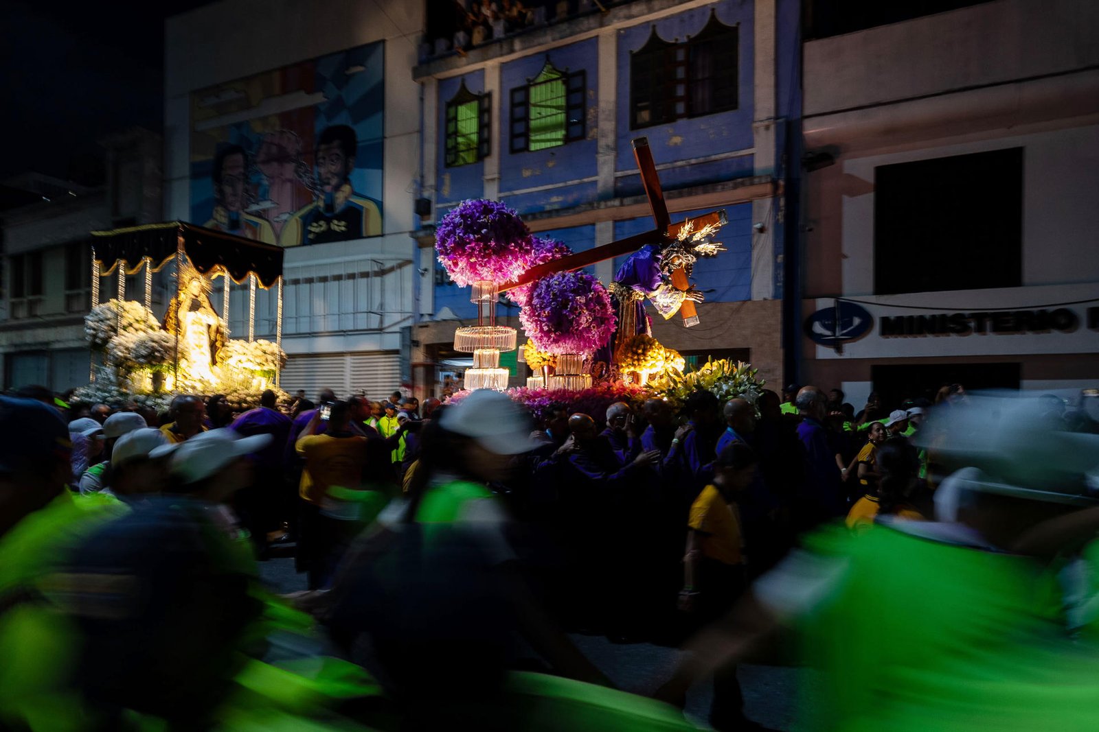 La imagen fue trasladada en un recorrido por distintas zonas de la capital venezolana, mientras los fieles acompañaban su paso vistiendo ropa y prendas moradas, color que simboliza la penitencia y la preparación espiritual.