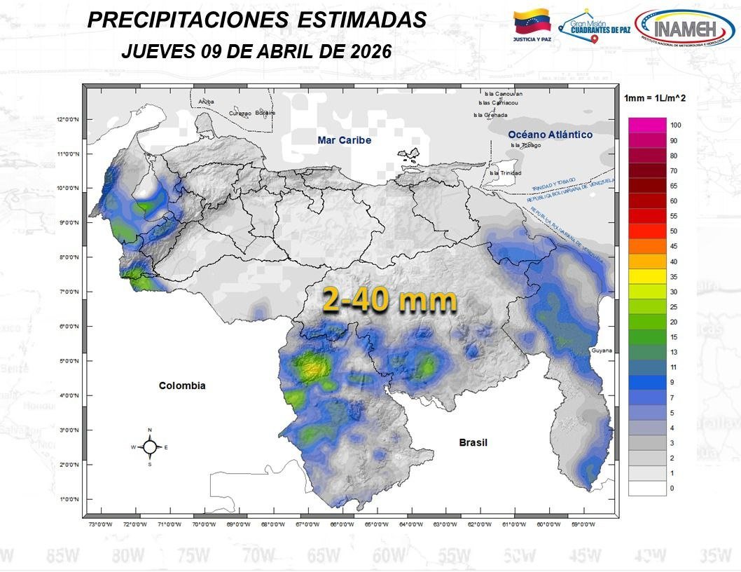 No obstante, el organismo resaltó que prevalecerán zonas nubladas con precipitaciones de intensidad variable en zonas de la Guayana Esequiba, Bolívar, partes de Amazonas, Llanos Occidentales, Los Andes, Lara, Falcón y Zulia.