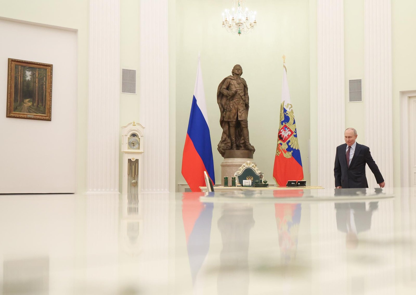 El presidente ruso Vladimir Putin llega a su reunión con el presidente kirguís Sadyr Japarov en el Kremlin en Moscú, Rusia, el 23 de abril de 2026. (Kirguistán, Rusia, Moscú) EFE/EPA/MAXIM SHIPENKOV