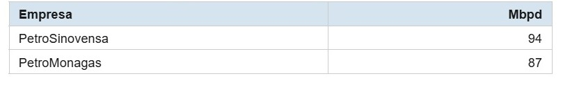 Las empresas mixtas que operan bajo licencias de la OFAC y los nuevos contratos establecidos en la LOH recientemente modificada —bajo la modalidad de contratar al socio minoritario privado como «Operador»— están produciendo los siguientes volúmenes: