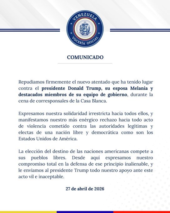 “Toda mi solidaridad con el presidente Donald Trump, su esposa Melania y su gabinete ante el vil y cobarde atentado que sufrieron este fin de semana. Extiendo mis oraciones con el presidente, su familia y todo el pueblo estadounidense en estos momentos”, publicó Guanipa en su cuenta en X.