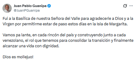 Captura X @JuanPGuanipa