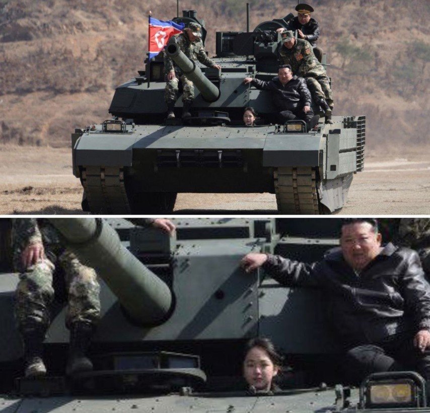 Imágenes de los ejercicios muestran al líder norcoreano y a su hija -quien se especula que sea la posible sucesora de Kim- a bordo de un tanque durante la visita a la base en la que se realizaron las maniobras, en las que participaron una compañía del regimiento de caballería, la principal unidad acorazada del grupo de operaciones de reserva y unidades de operaciones especiales.