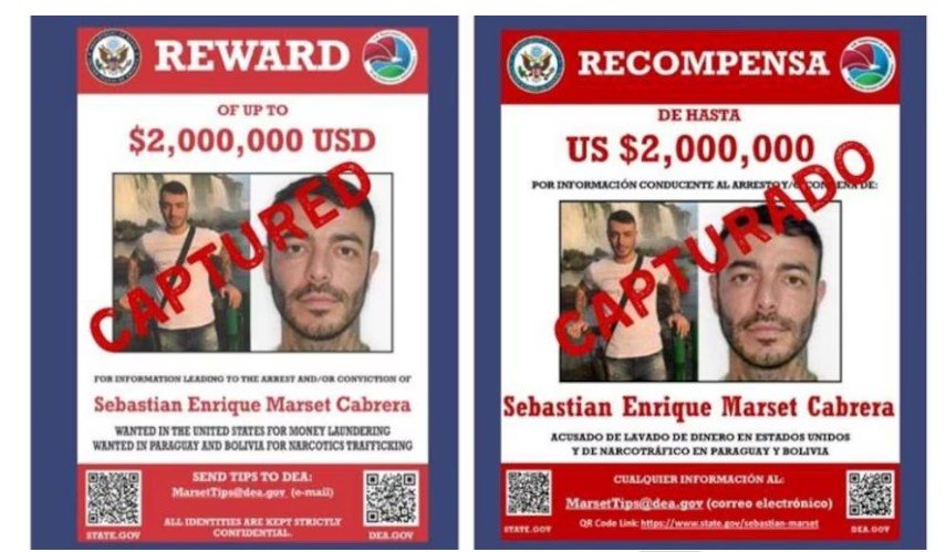 Marset capturado: el cartel que difundió la DEA tras el arresto del narcotraficante uruguayo