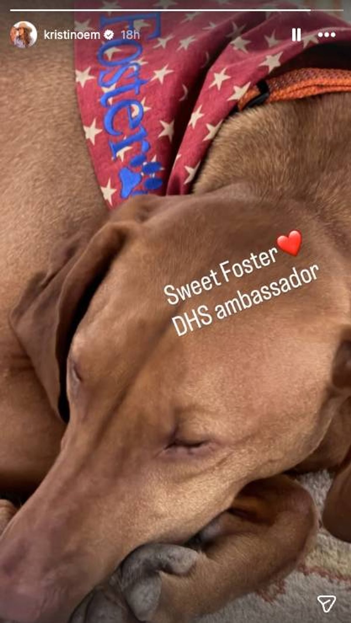 Trump anunció simultáneamente que el senador, Markwayne Mullin, republicano por Oklahoma, la reemplazaría, lo que representa un avance para el senador, quien en su primer mandato apoya la postura de MAGA. Precisamente una semana después, Noem subió la foto de un perro a su historia de Instagram. Subtituló la imagen: «Dulce Foster. Embajador del DHS», acompañada de un emoji de corazón.