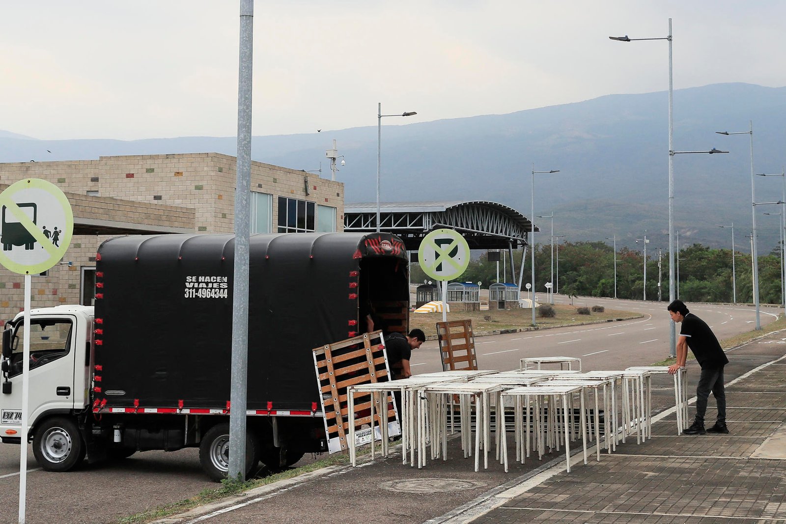 El Atanasio Girardot (o ‘Tienditas’) es uno de los cuatro puentes que comunican al departamento colombiano de Norte de Santander con el estado venezolano de Táchira (oeste), en donde hasta esta tarde trabajadores preparaban la tarima para el encuentro.