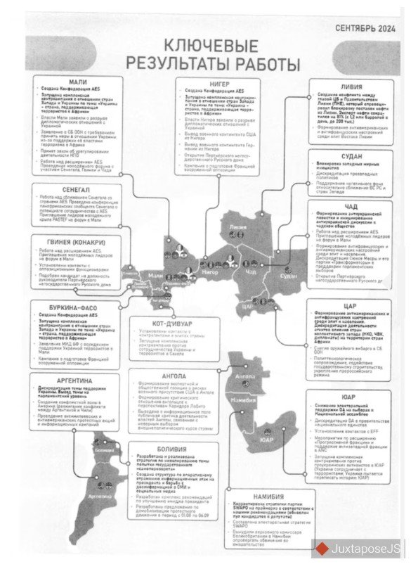 El mismo modelo se trasladó al Sahel -una importante región geográfica al sur del Sahara con la creación de la Alianza de Estados del Sahel (AES) en septiembre de 2023, formada por MalíBurkina Faso y Níger, estados que atravesaron golpes militares acompañados de retórica antioccidental. Según los archivos, “La Compañía” afirma haber sido determinante en la génesis de esta alianza y anticipa la expansión de una “coalición antioccidental más grande de África” desde 2024 en adelante. Las acciones incluyeron bloqueo de medios europeosexpulsión de ONG y rescisión de convenios de cooperación técnico-militar con Occidente.