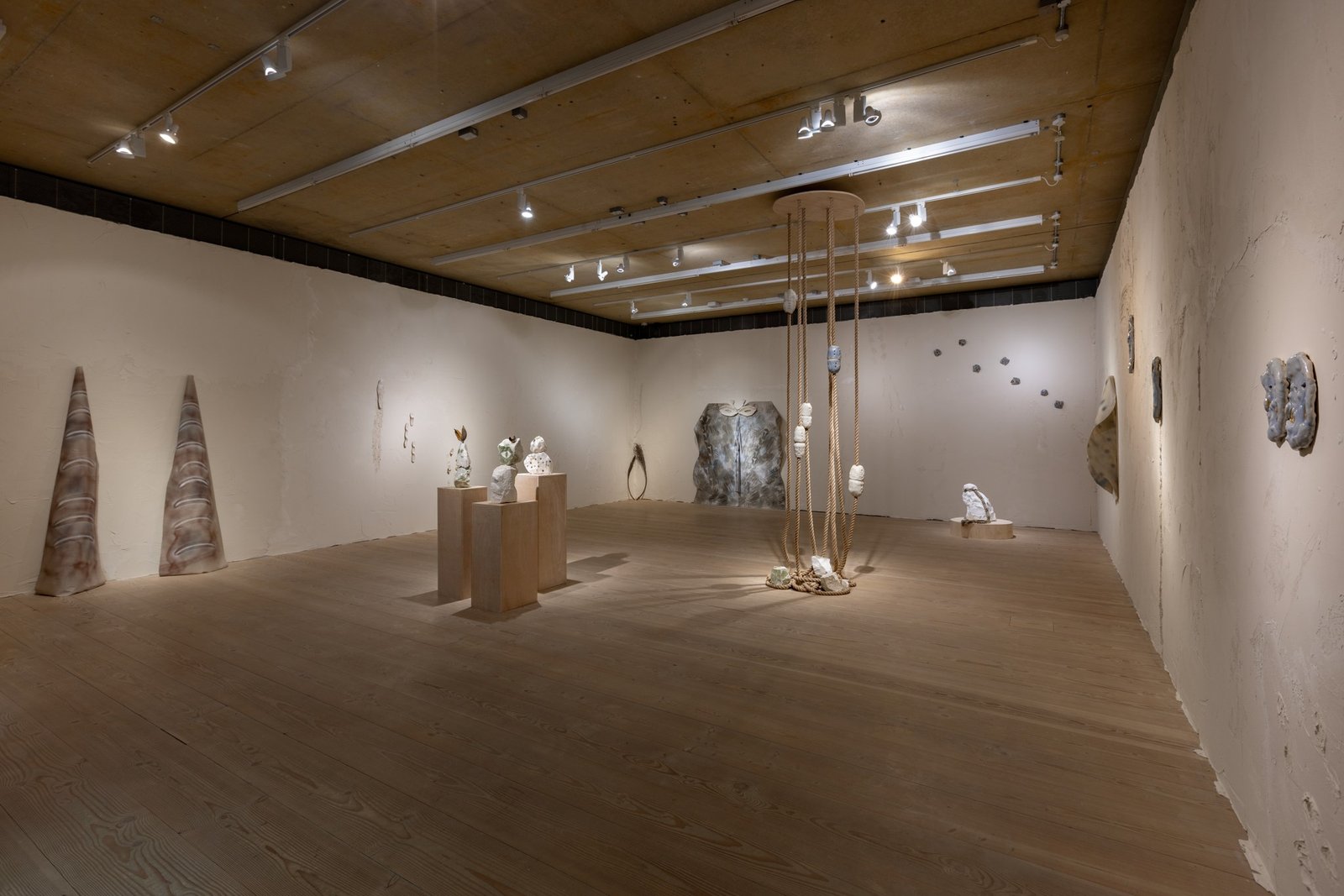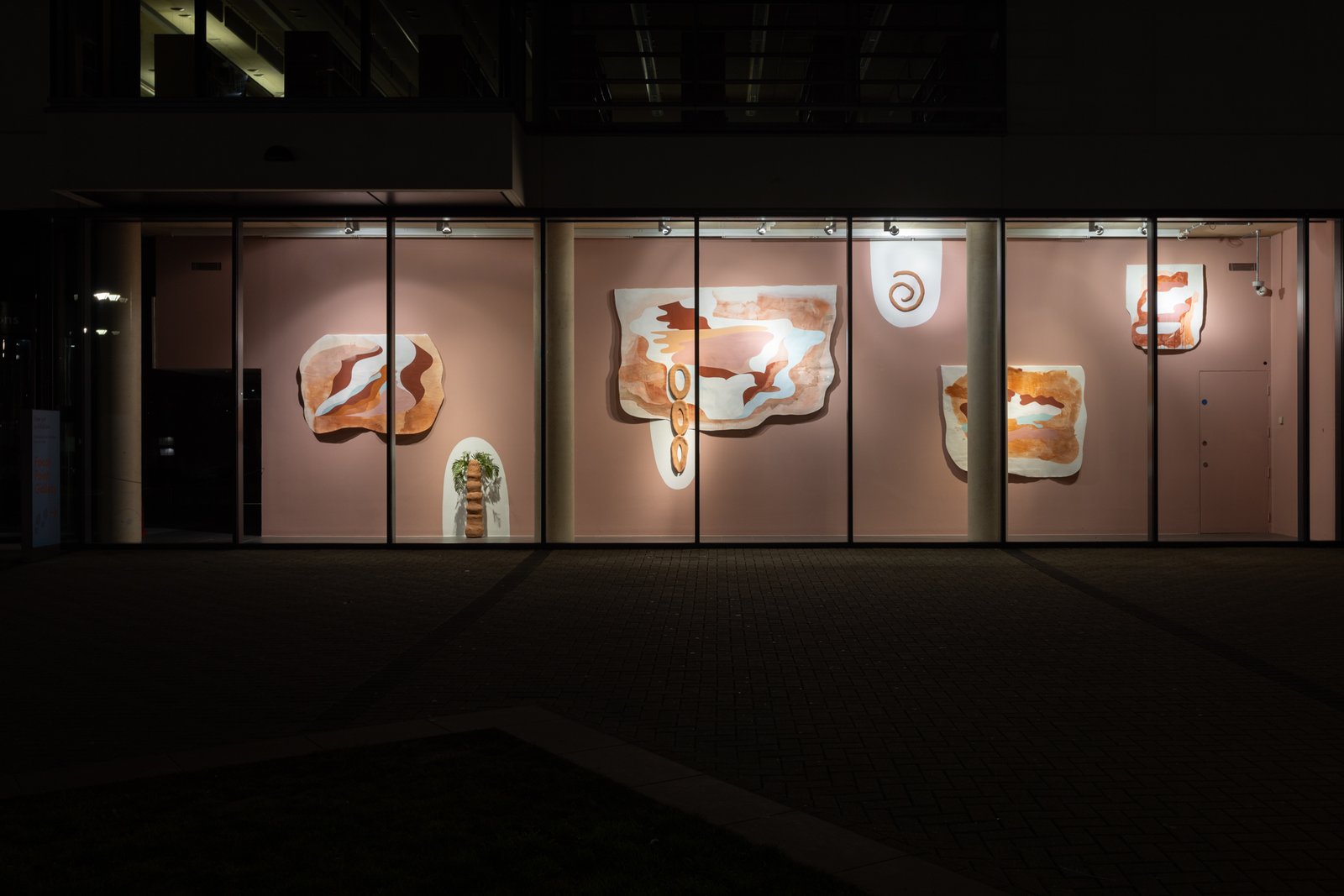 Adicionalmente, la artista presenta cerámicas que interactúan con pinturas de gran formato de Jaime Gili, que forman un mural visible desde la plaza exterior de la galería. Esta obra referencia el mapa geológico de William Smith de 1815, que denota una visión fundacional pero extractivista del paisaje británico.