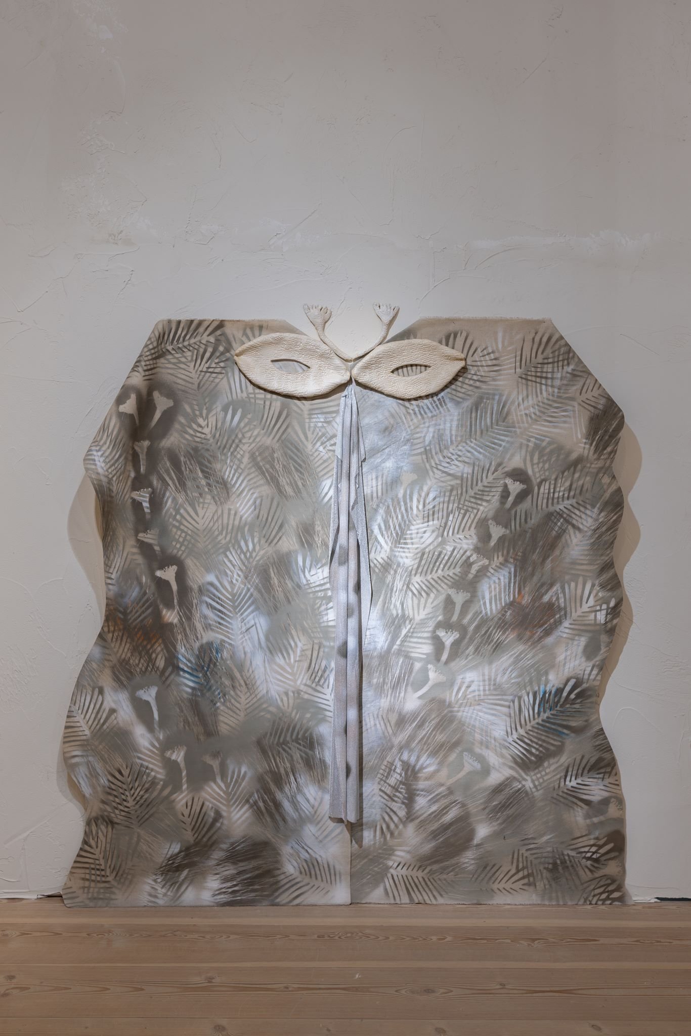 La primera instalación, describe la galería, examina la tiza como un material significativo para la identidad británica. La politización de la costa inglesa transformó sus acantilados en fronteras imponentes, tanto física como simbólicamente. Sin embargo, la tiza también funciona como un registro visual del “tiempo profundo”, formada por restos acumulados de organismos microscópicos durante millones de años, cuando las islas británicas estaban conectadas a grandes masas de tierra y las fronteras no existían. En sala se podrán apreciar instalaciones escultóricas hechas con tiza del Parque Natural Chafford Gorges, y que fueron pintadas, grabadas y fusionadas con plantas secas (aludiendo a la dispersión botánica global durante el colonialismo). En las paredes del espacio, Pizzani imprimió sus extremidades, su cabeza y sus manos sobre el yeso húmedo en un acto performático solitario, para evocar figuras de fósiles que revelan el comportamiento de organismos antiguos.