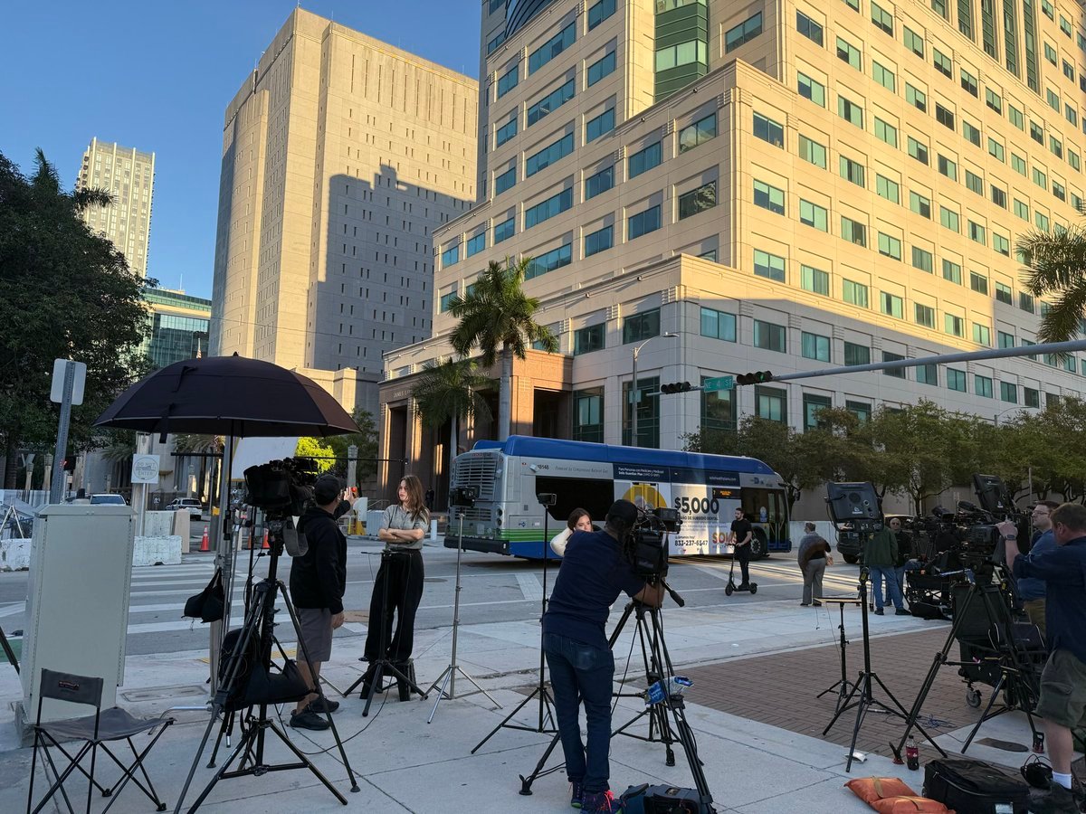 El periodista de Associated Press, Joshua Goodman, reportó este martes una inusual escena en las afueras del tribunal federal de Miami, donde desde tempranas horas se formó una larga fila de personas a la espera del testimonio del secretario de Estado de Estados Unidos, Marco Rubio.