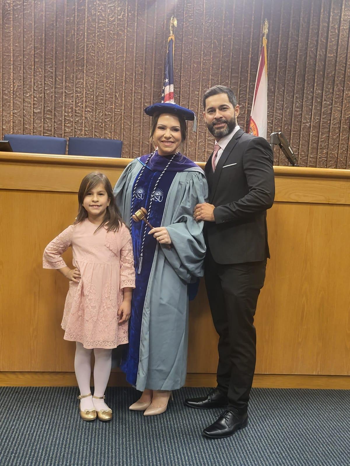 Con el tiempo logró entrar a trabajar en pequeñas firmas legales. Primero aprendiendo, observando y ganando experiencia como paralegal. Pero el sueño no se detuvo allí. Decidió dar un paso más grande: estudiar Derecho en Estados Unidos. Mientras de día trabajaba, de noche asistía a la universidad y, al mismo tiempo, cumplía su rol de madre y esposa.
