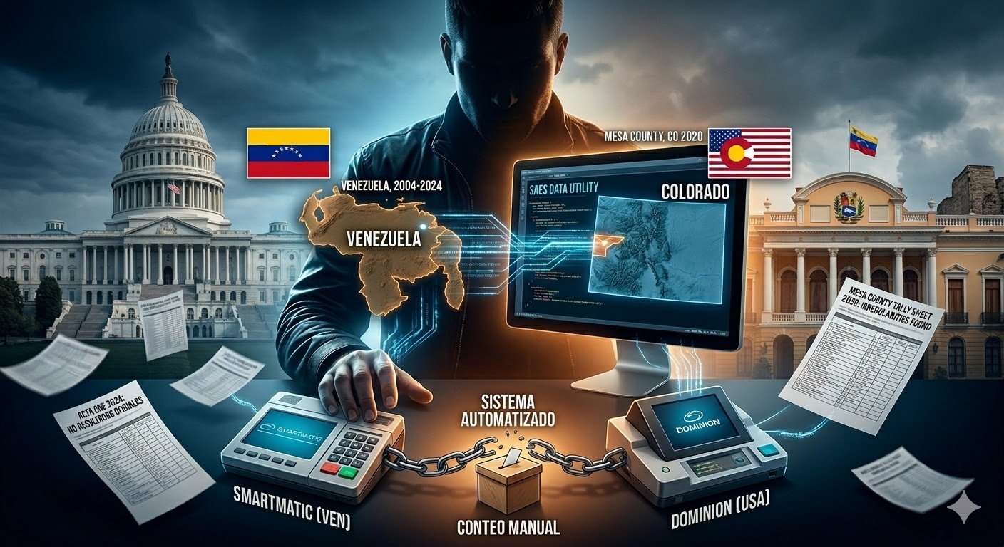 Pero esta historia no se queda allí. El abogado de Tina Peters, John Case, promovió testimonios que no fueron escuchados en el juicio por el sesgo político del caso, especialmente uno muy importante: un testigo venezolano, técnico en sistemas electorales, que dio un testimonio muy detallado en relación al sistema utilizado en el condado de Mesa, propiedad de la compañía Dominion Voting Systems, el mismo que, según su declaración, fue utilizado en Venezuela por la compañía Smartmatic. Y lo más interesante, la declaración completa de este testigo fue publicada en su totalidad en septiembre del año pasado 2025, después del encarcelamiento de Peters (ver la declaración completa en inglés, en Sworn Testimony of the venezuelan Smartmatic Whistleblower, en https://rumble.com/v6zg9u8-sworn-testimony-of-the-venezuelan-smartmatic-whistleblower.html).