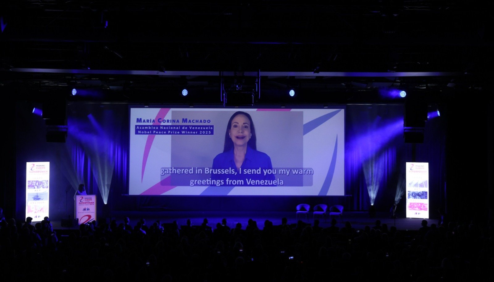 “Es necesario que exijan rendición de cuentas y que los autores sean castigados. Necesitamos a Europa, es esencial que el trabajo que hemos construido con América Latina y aliados clave, como Estados Unidos, resuene en todo el continente europeo”, dijo el Premio Nobel de la Paz 2025 a través de un video difundido durante el congreso, que se realizó este 24 de octubre en Bruselas, Bélgica.