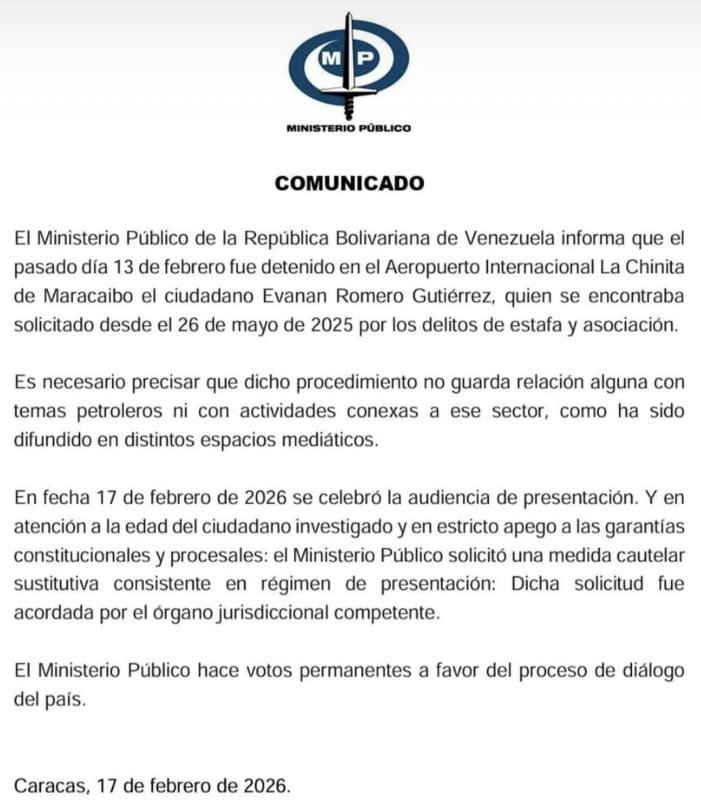 El Ministerio Público (MP) reveló en la madrugada de este miércoles su excusa para investigar al asesor petrolero Evanan Romero Gutiérrez el pasado viernes 13 de febrero en el Aeropuerto Internacional La Chinita en Maracaibo, estado Zulia.