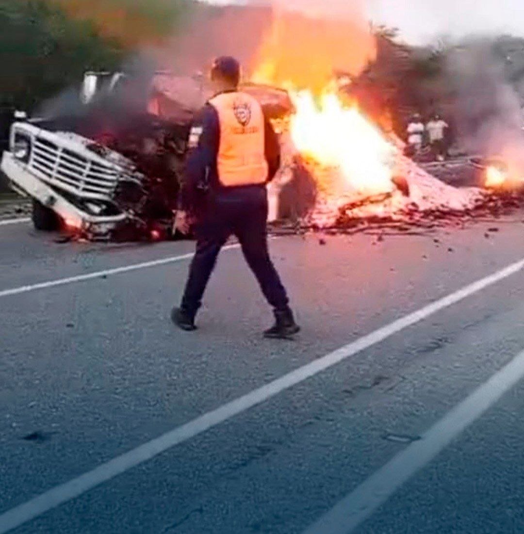 En el siniestro estuvieron involucrados un camión NPR cargado de carbón vegetal y un camión 750, los cuales colisionaron de frente, generando la explosión de ambos vehículos, posteriormente consumidos por las llamas.