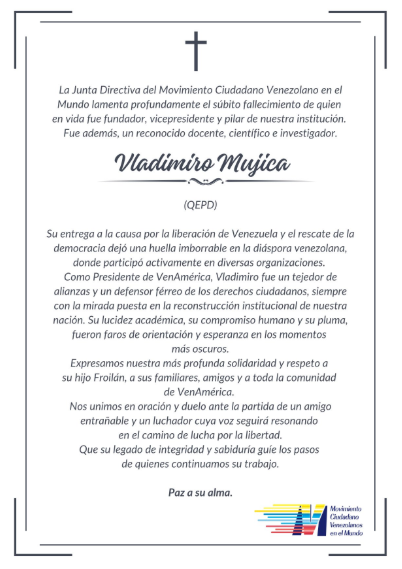 El Movimiento Ciudadano Venezolanos en el Mundo publicó una nota de condolencias donde lamentaron el hecho.