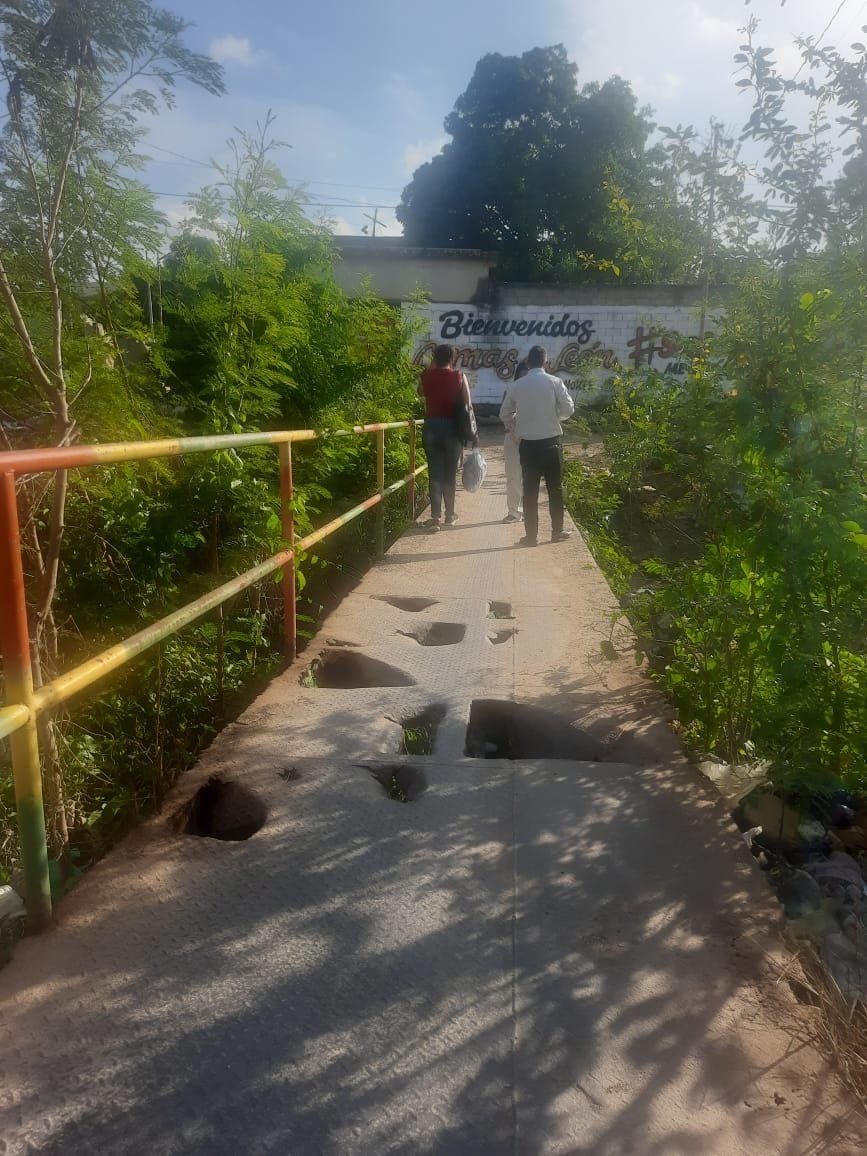 Por otro lado, puntualizaron que la gestión pasada de la alcaldía realizó una reparación a la pasarela, pero con el paso del tiempo, se ha vuelto a deteriorar al punto de que se han formado huecos en la estructura metálica, los cuales ya han ocasionado accidentes.
